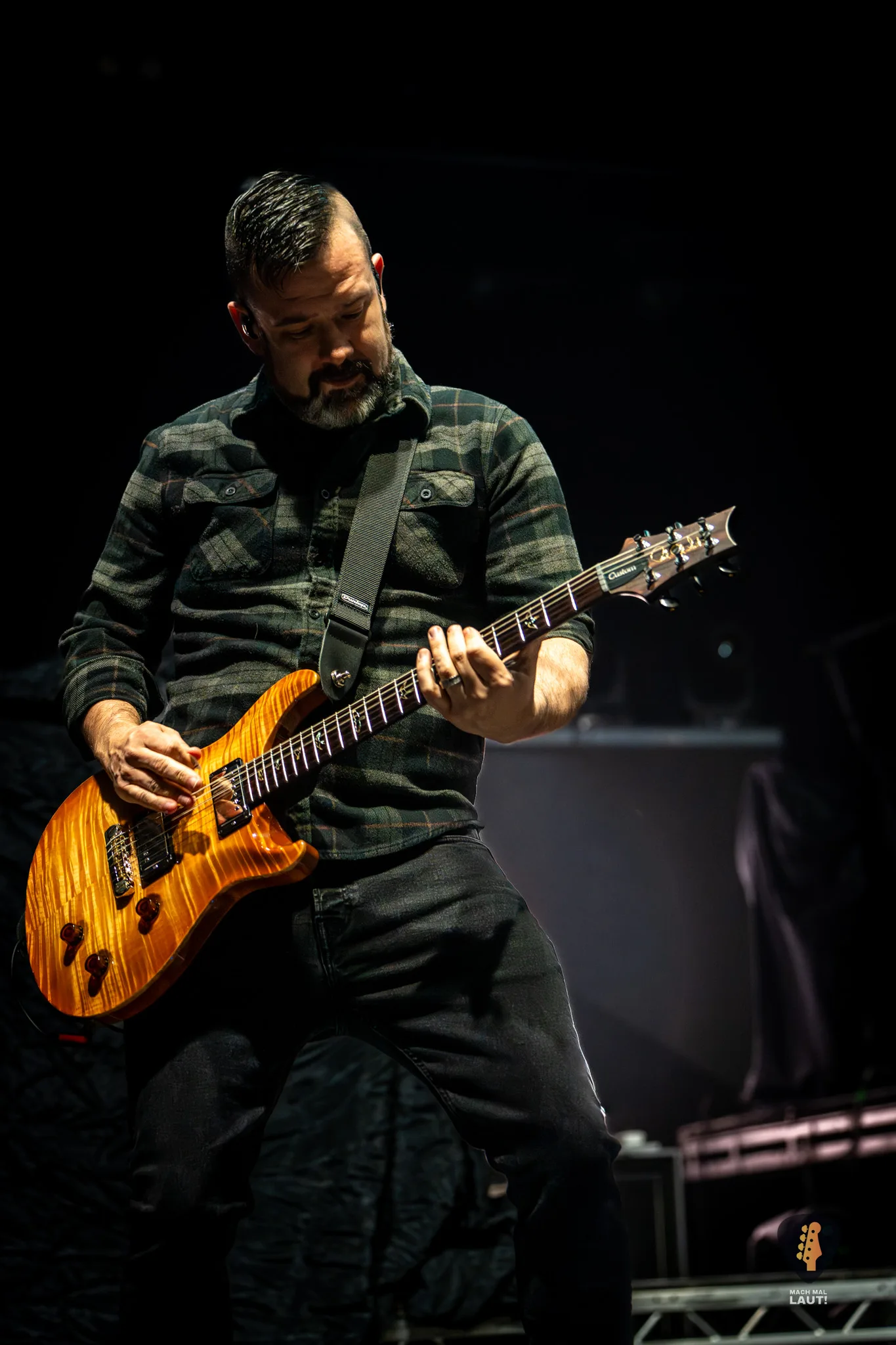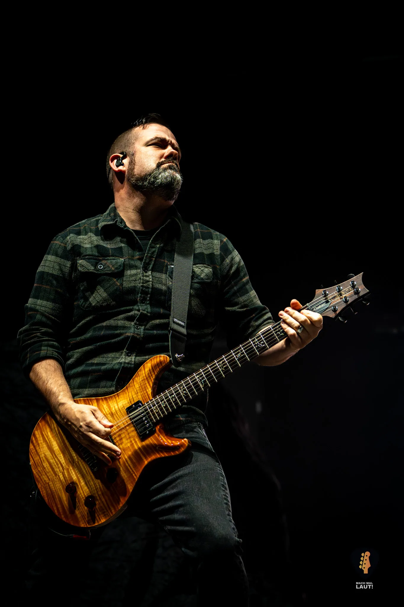Den Anfang machten Sevendust, die an diesem Abend sichtlich bewegt wirkten, wieder in Europa zu spielen. An der Rhythmus-Gitarre spielte Tim Tournier als Ersatz für Clint Lowery, der aufgrund von familiären Verpflichtungen und gesundheitlichen Untersuchungen erst in der zweiten Hälfte der Tour wieder dabei sein wird. Tim fügte sich erstaunlich souverän ins Bandgefüge ein. Das ist auch kein Wunder, da er schon öfter mit der Band gespielt hat und als deren Manager die Band zudem gut kennt.