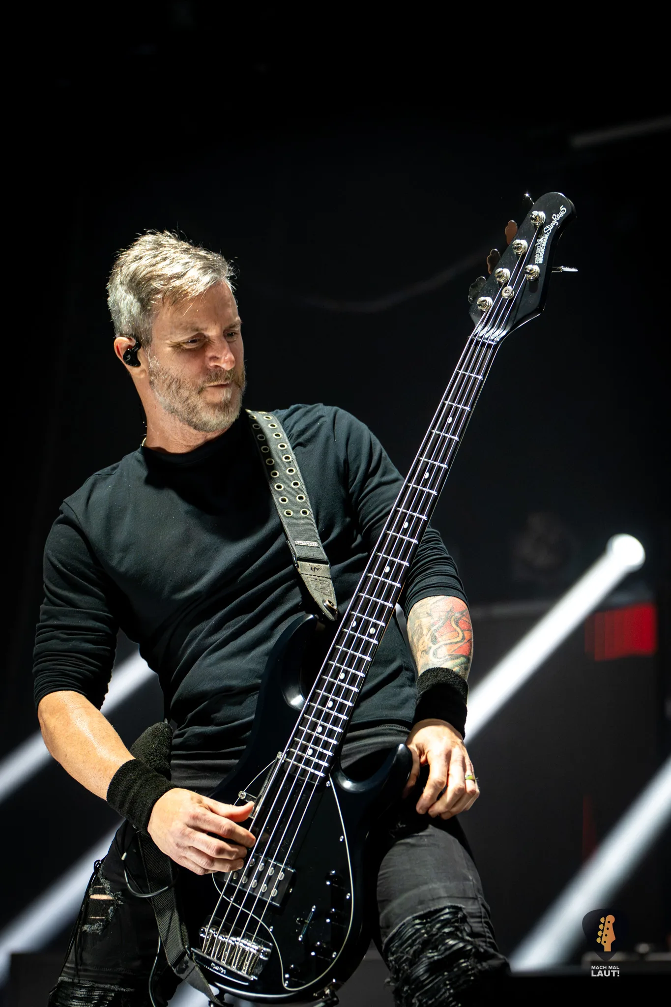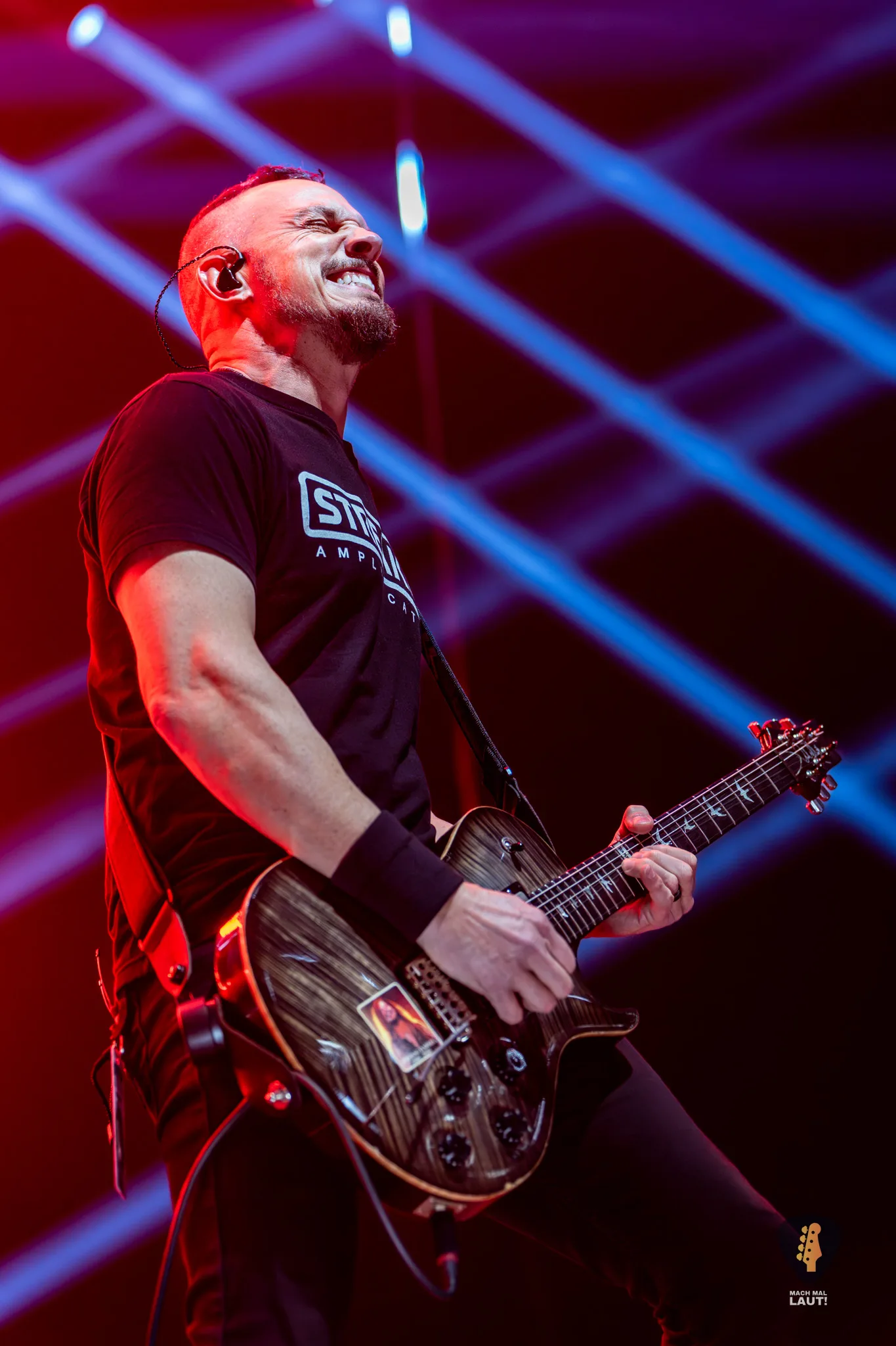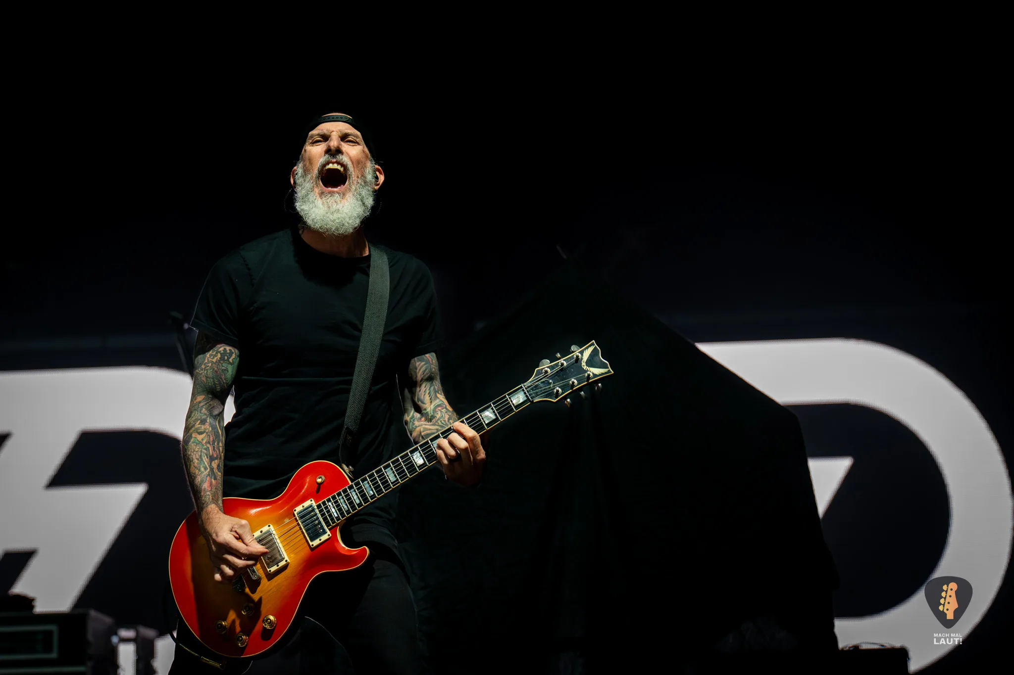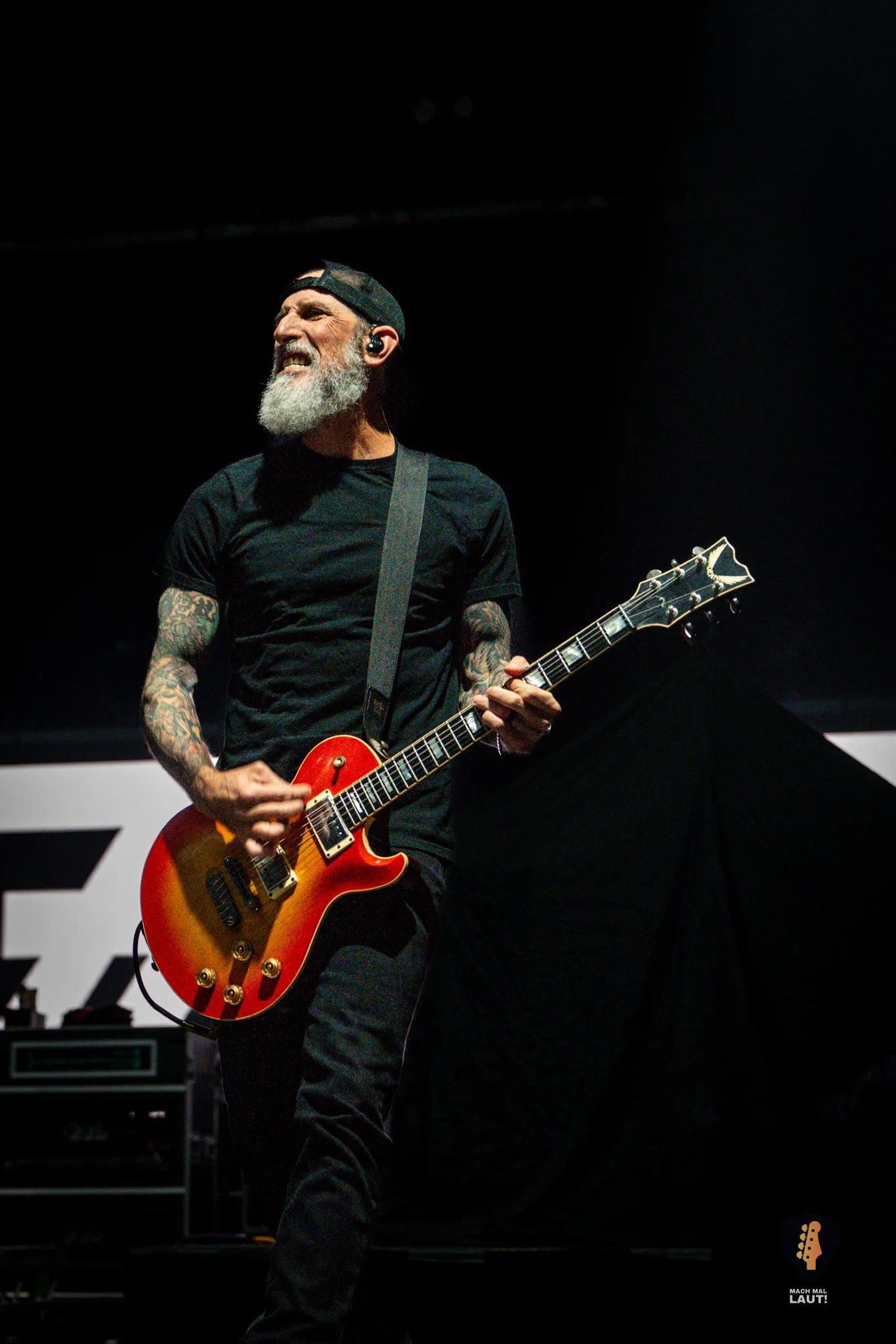 Als schließlich Alter Bridge die Bühne betraten, wurde es auch endlich richtig laut in der Halle. Nachdem die Halle bereits den ganzen Abend eingenebelt wurde, kam jetzt die volle Stärke der starke Lichtshow zum Vorschein, die die Alter Bridge Performance begleitete. Die Band war ebenfalls sichtlich motiviert und freute sich wieder gemeinsam auf Tour zu sein. Die Setlist war ein richtig guter Mix aus allen Phasen der Bandgeschichte. Nach dem Beginn mit Silent Divide vom neuen Album Alter Bridge ging es direkt 13 Jahre zurück zum Album Fortress mit Addicted To Pain. Fortress stellte einen echten Fanmoment dar. Der Song wurde das erste Mal seit 2017 wieder live gespielt und wurde zuvor über eine Abstimmung auf dem Instagram Kanal der Band von den Fans für diesen Abend abgestimmt. Bei Burn it down durfte Mark Tremonti das erste Mal an diesem Abend den Gesang übernehmen.