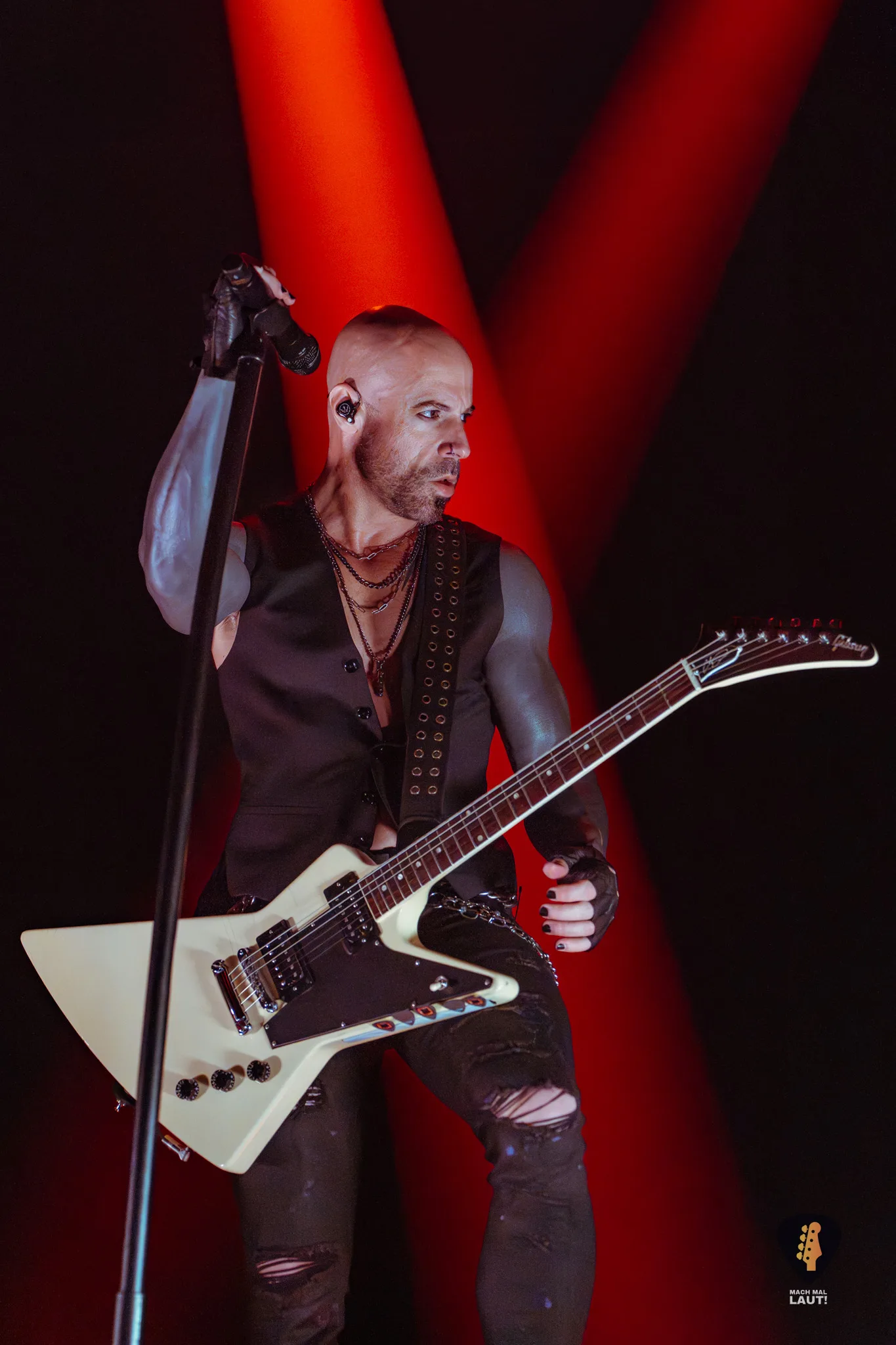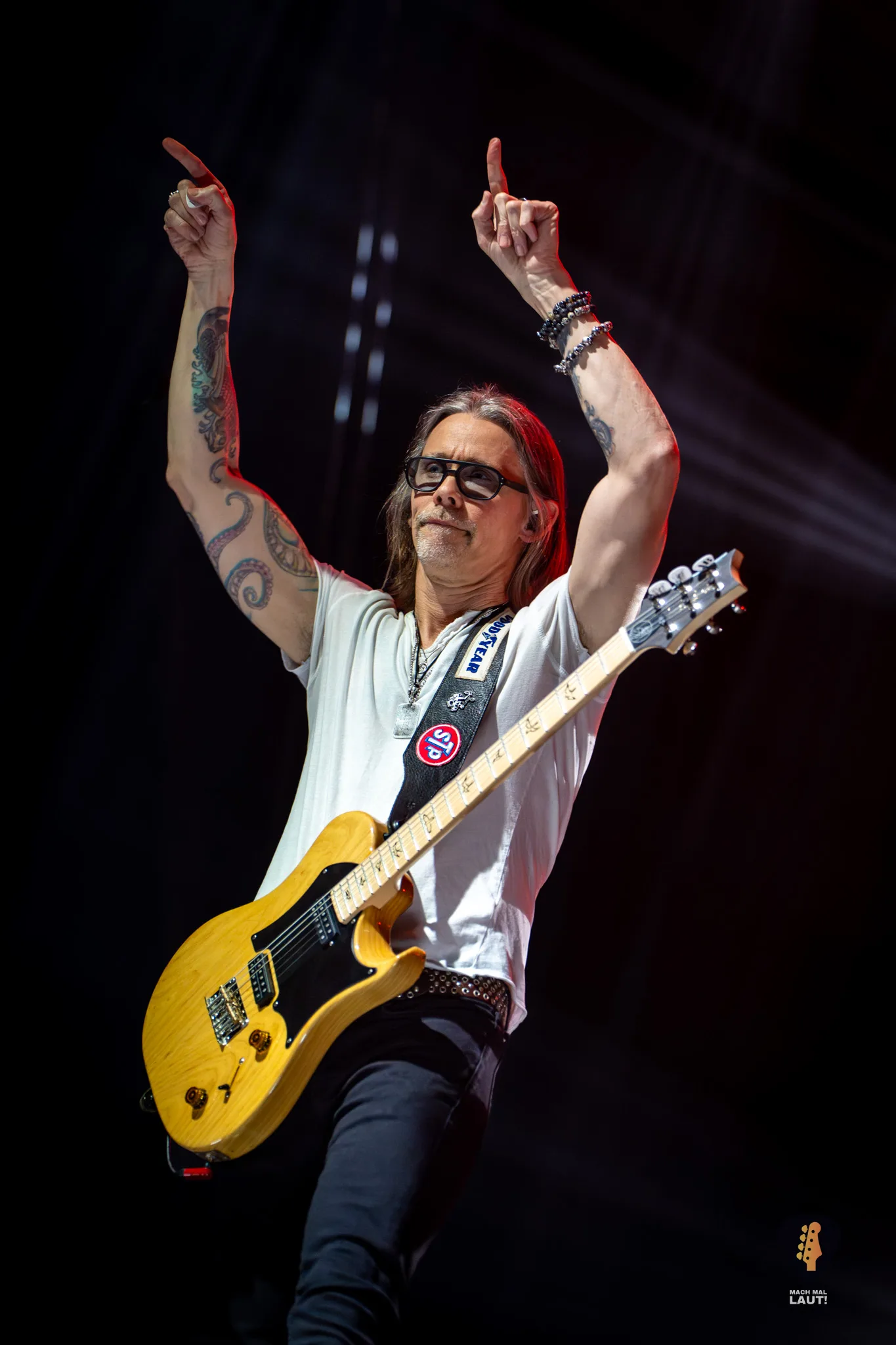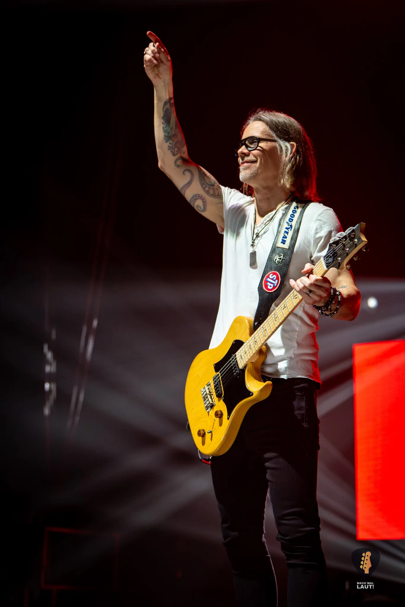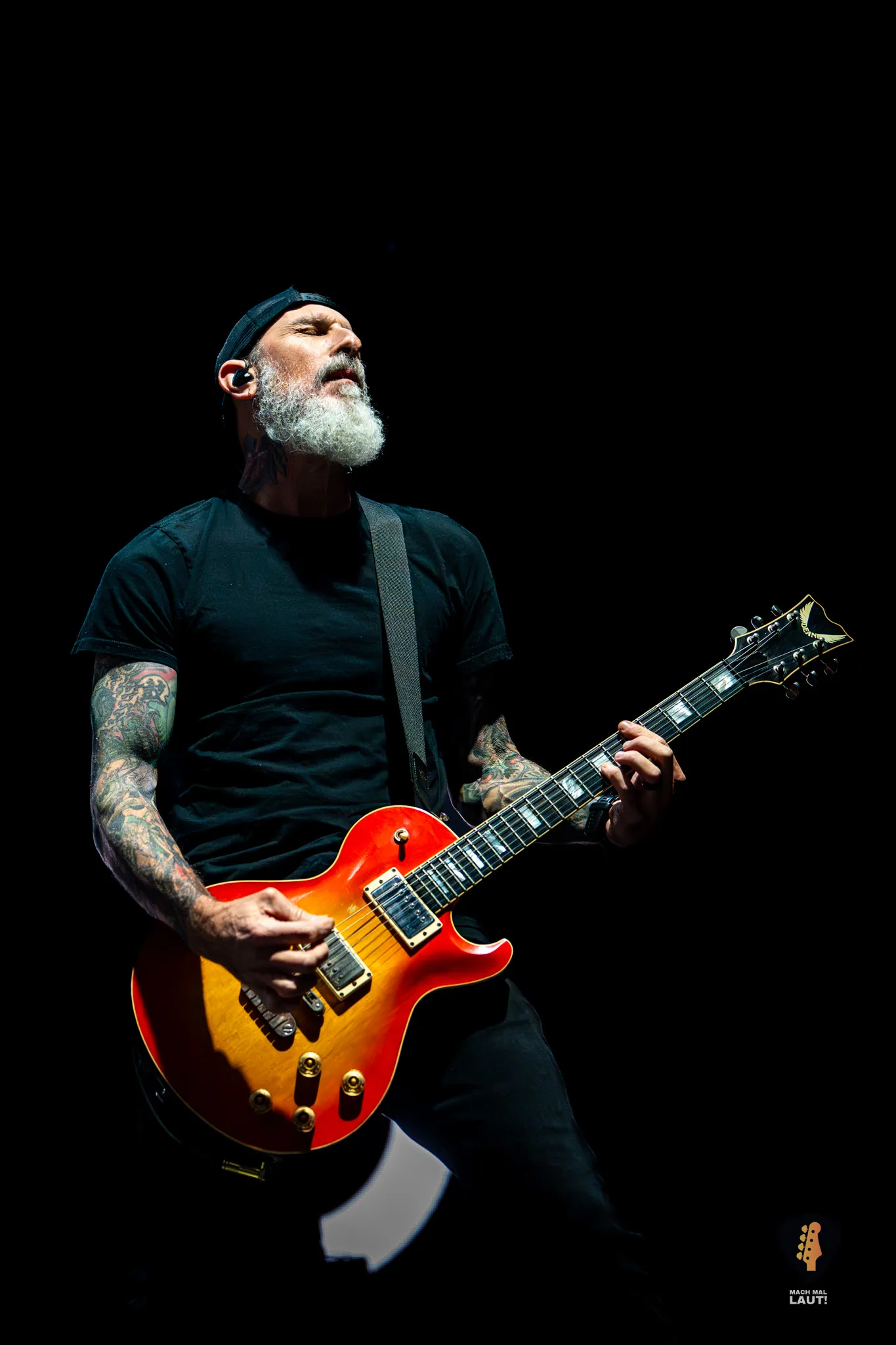 Sänger Myles Kennedy zeigte sich bestens aufgelegt, scherzte mit dem Publikum und kündigte vor dem Song In Loving Memory überraschend aber mit einem Augenzwinkernd das Ende der Show und den Beginn des Comedy-Programms an. Gemeinsam mit Mark Tremonti spielte er dann jedoch den emotionalen Song, der bei uns für Gänsehaut sorgte, während in der Halle Feuerzeuge und Handylichter leuchteten. Der Refrain wurde lautstark von der gesamten Halle mitgesungen.