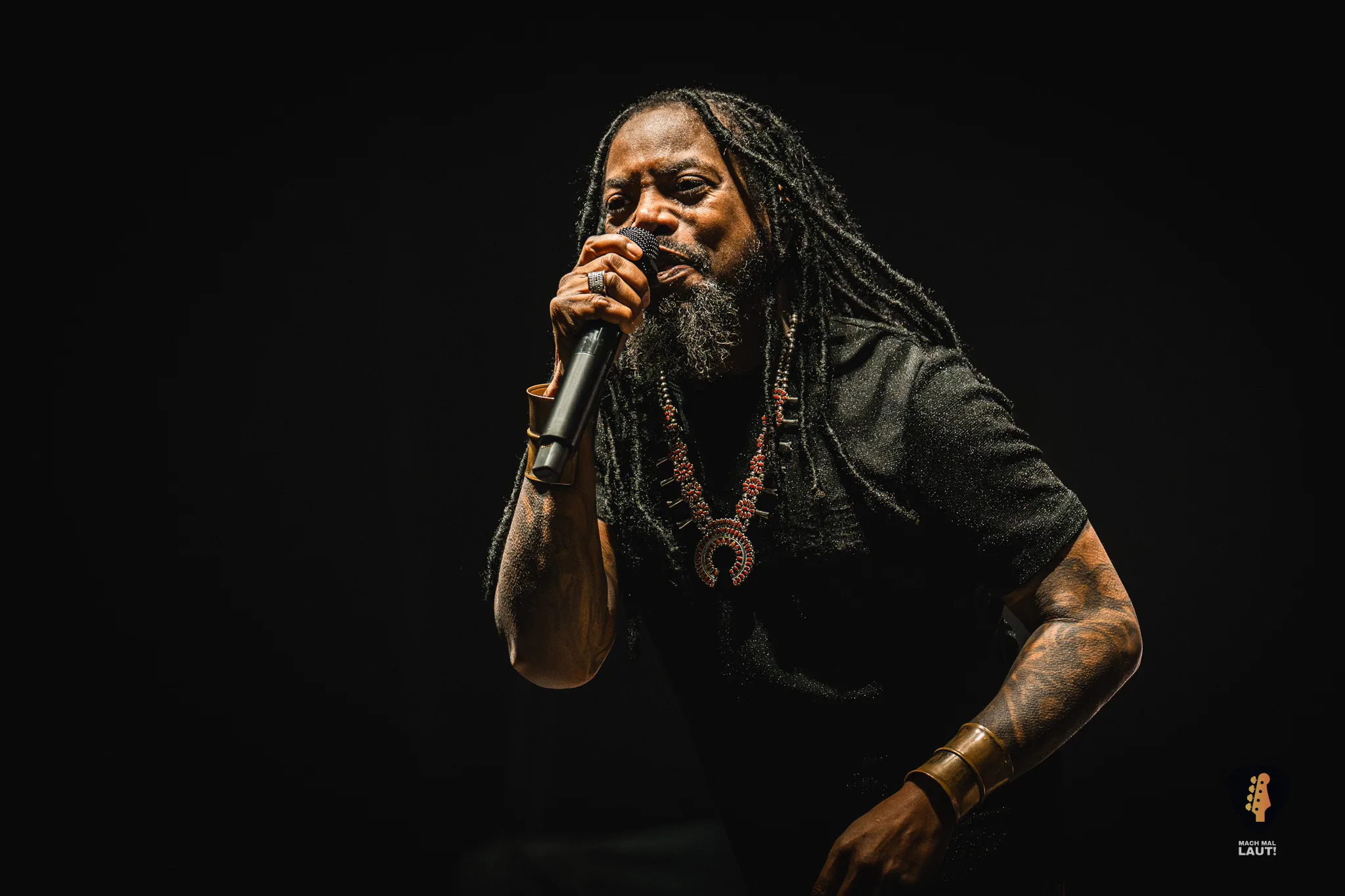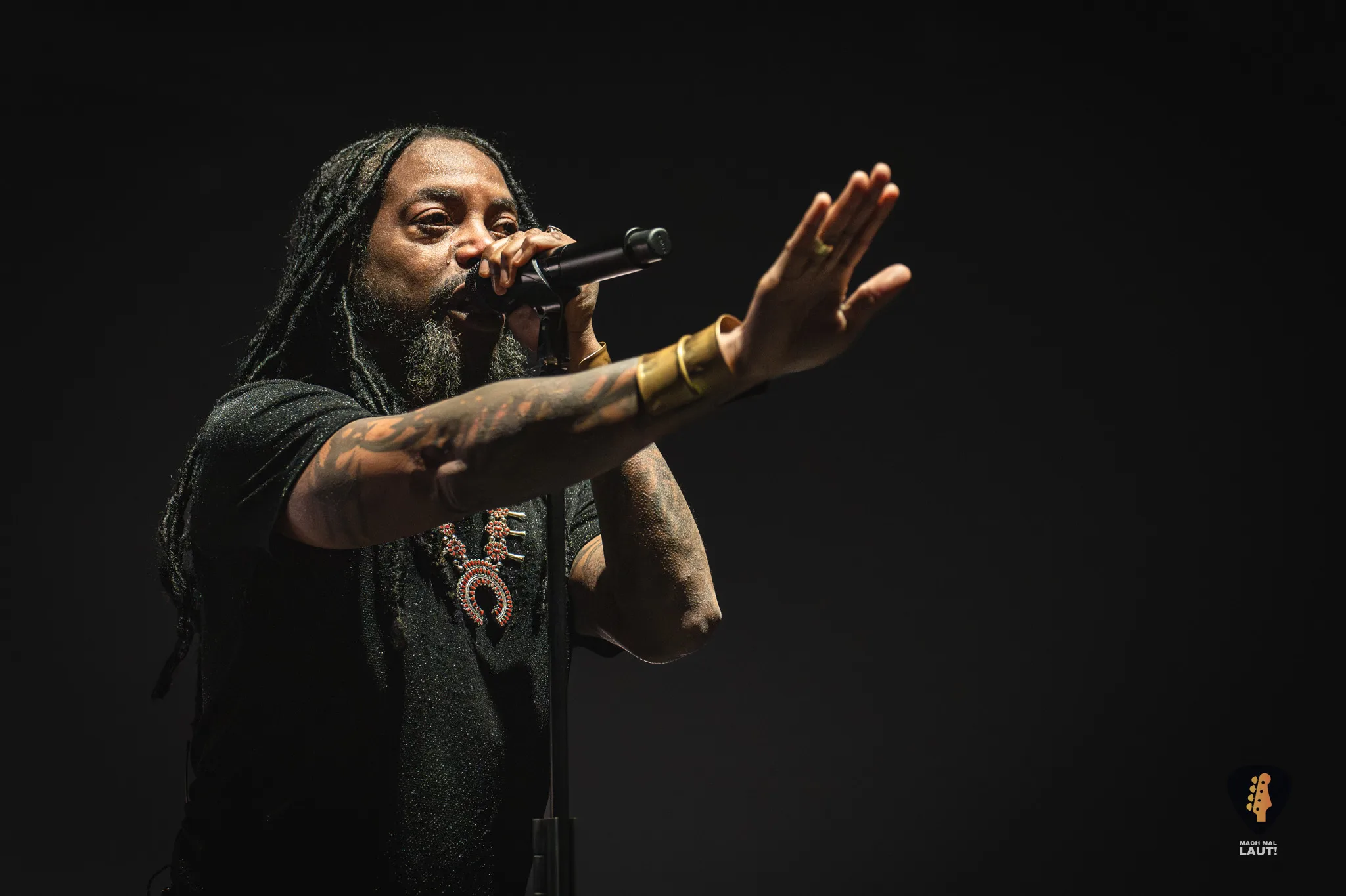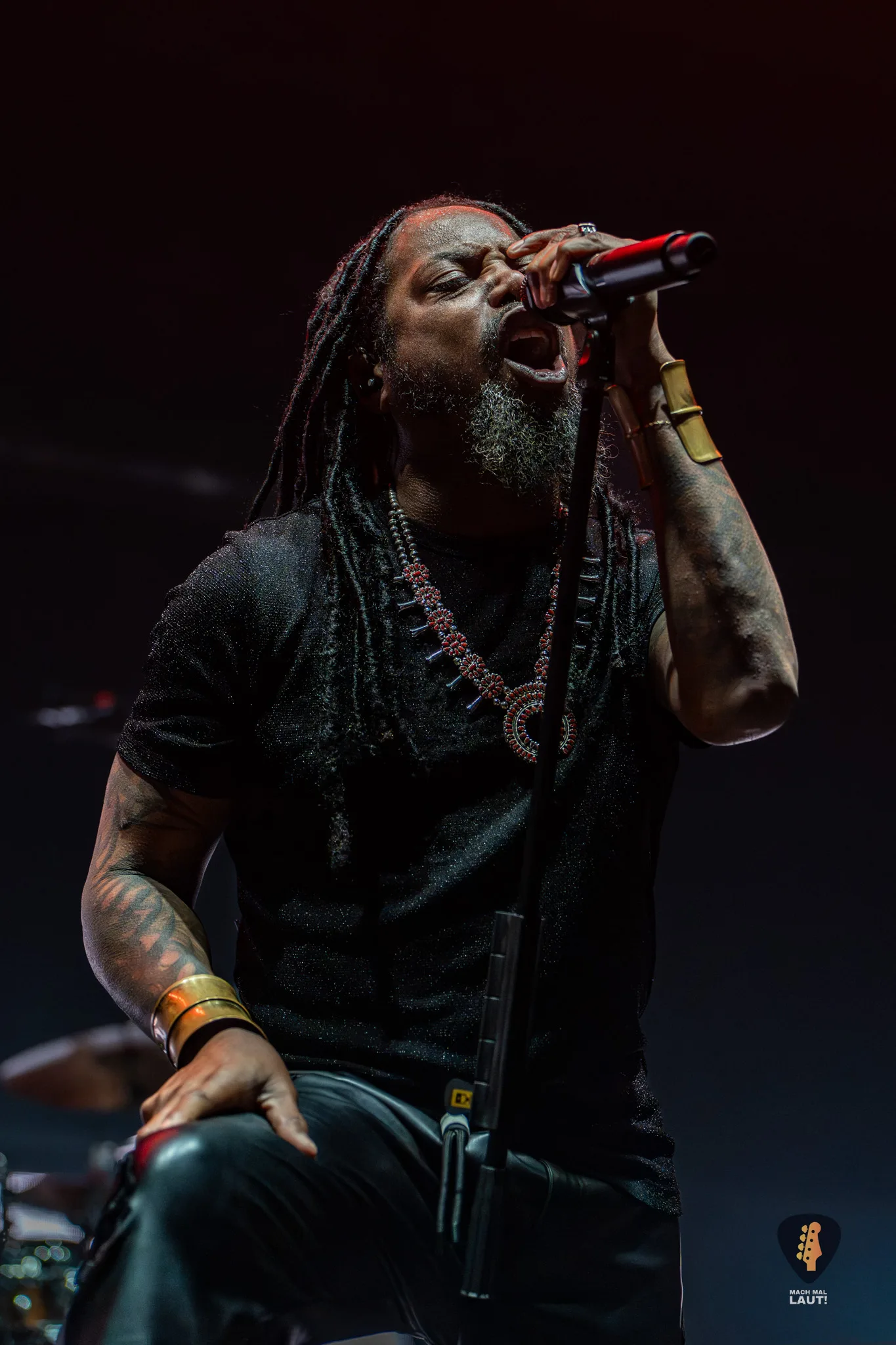 Die Band wirkte insgesamt extrem glücklich, fast schon überwältigt von der Stimmung in der Halle. Sänger Lajon Witherspoon hatte mehrfach Tränen in den Augen, bedankte sich immer wieder mit Gesten beim Publikum und genoss jeden einzelnen Moment. Auch Bassist Vince Hornsby fiel auf: Mit Cowboyhut und breitem Grinsen tanzte er über die Bühne und transportierte die Freude der Band direkt ins Publikum. Es war ein Auftakt mit viel Herz und ich habe mich ebenfalls gefreut, die Band endlich einmal live zu erleben. Das erste Mal habe ich Sevendust vor über 20 Jahren gehört, aber dieser Abend war der erste Liveauftritte den ich von ihnen gesehen habe.