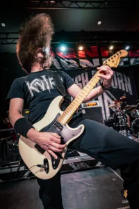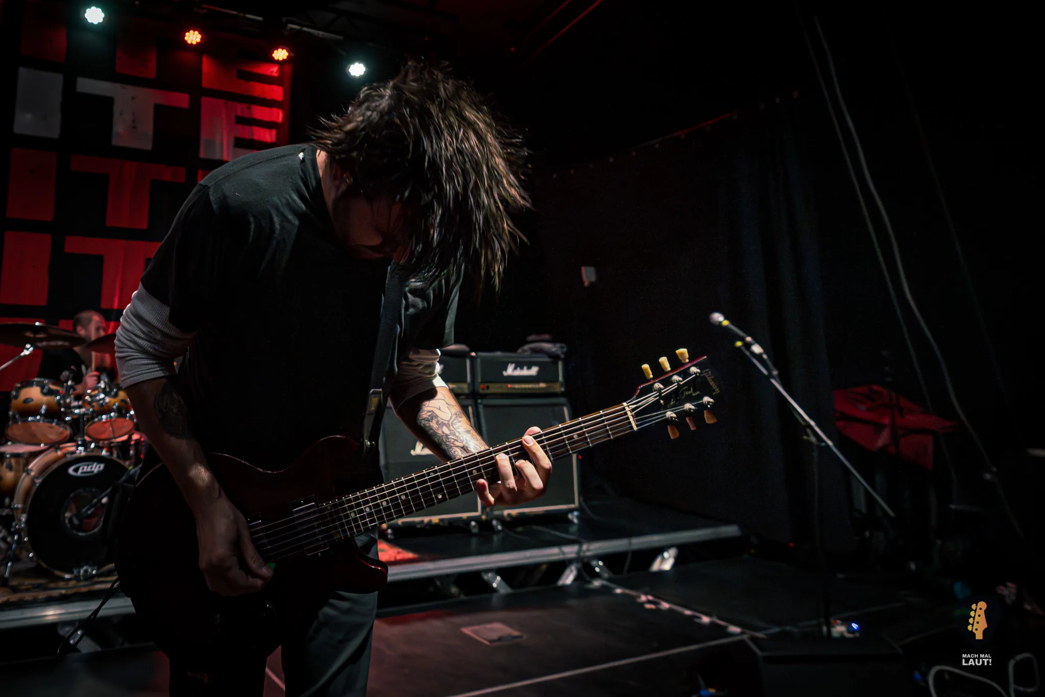 Das Publikum zeigte sich während des Sets von Ash Return noch etwas zurückhaltend. Vor der Bühne wurde viel Platz gelassen, den Sänger Hirschi direkt einnahm und das Moshpit selbst startete. Im Laufe des Konzerts nutzten dann auch weitere Besucher:innen die Möglichkeit, ordentlich zu moshen. Insgesamt war es eine energiegeladene Show, die Lust auf mehr gemacht und die Wände der Alten Schlachterei zum Wackeln gebracht hat.