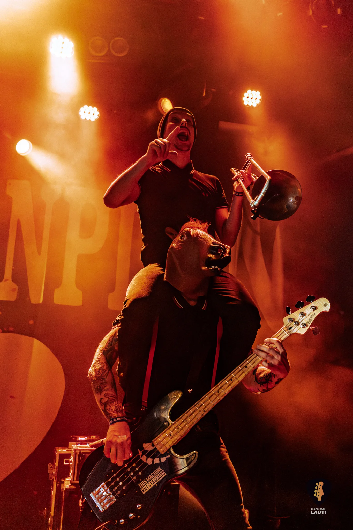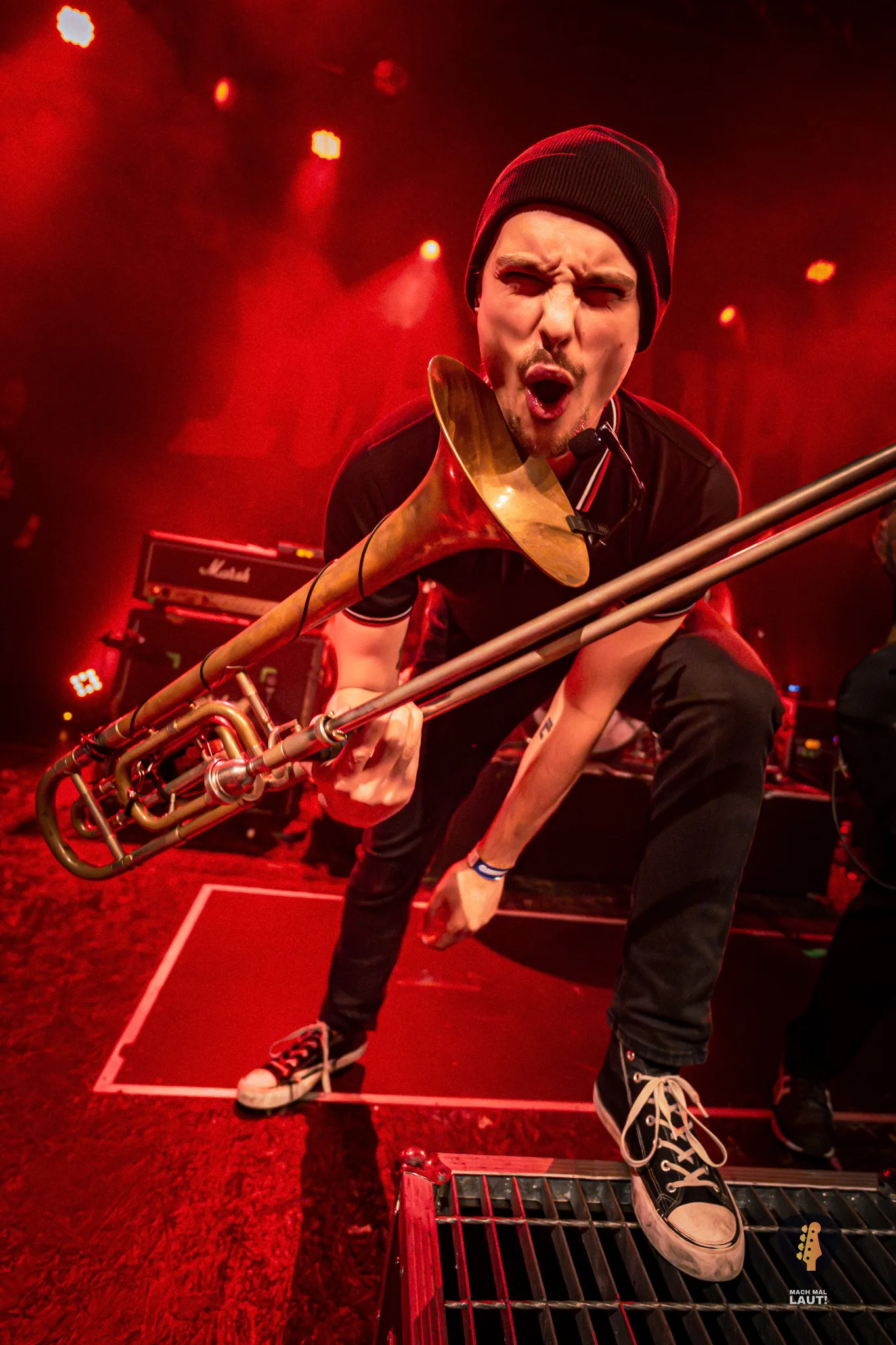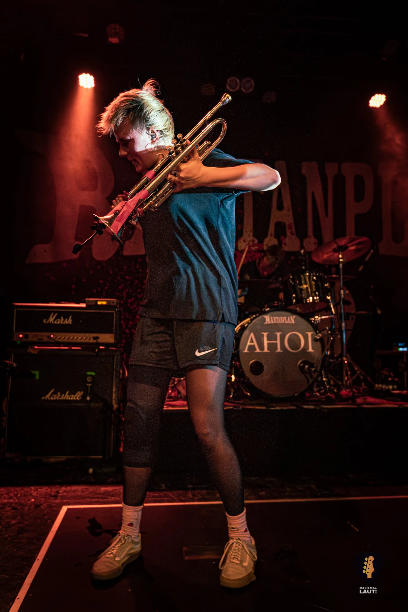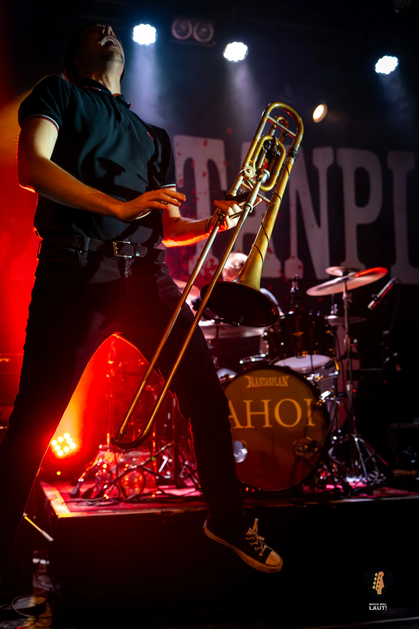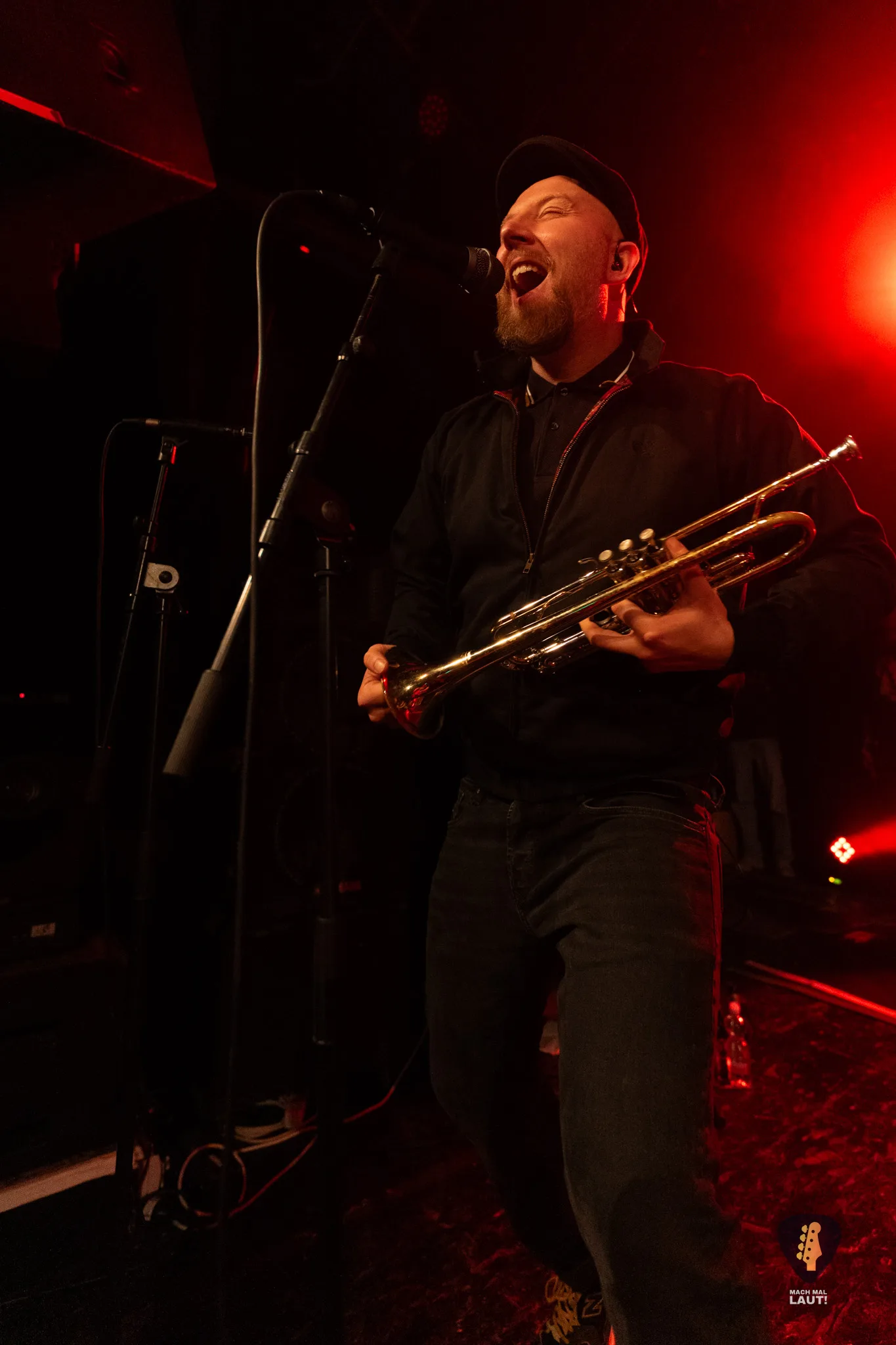 Dann war es so weit – Das Rudel betrat die Bühne und machte von der ersten Minute an klar, warum dieses Konzert zu den festen Terminen im Hamburger Konzertkalender gehört. Die 10. Ausgabe fühlte sich nicht wie ein normales Konzert an, sondern wie ein großes Familientreffen von Band und Publikum. Die Band um Sänger Torben tauschte auf der Bühne immer wieder die Positionen und interagierte mit dem Publikum. Besonders die Trompeten- und Posaunenfraktion aus Lea, Ulf und David tanzte und sprang wild auf der Bühne umher und ließ sich auch nicht davon abhalten einen Ausflug ins Publikum zu machen. Bassist Pedi, der für ein paar Songs die Gitarre vom Haupt-Bassisten Kalle übernahm sprang sogar für einen Stage-Dive von der Bühne aufs Publikum. Schlagzeuger Marlon gab am Schlagzeug alles und war am Ende wie alle Bandmitglieder sichtlich durchgeschwitzt. Müde wurden sie während des Sets dennoch nicht und gaben weiter Vollgas.