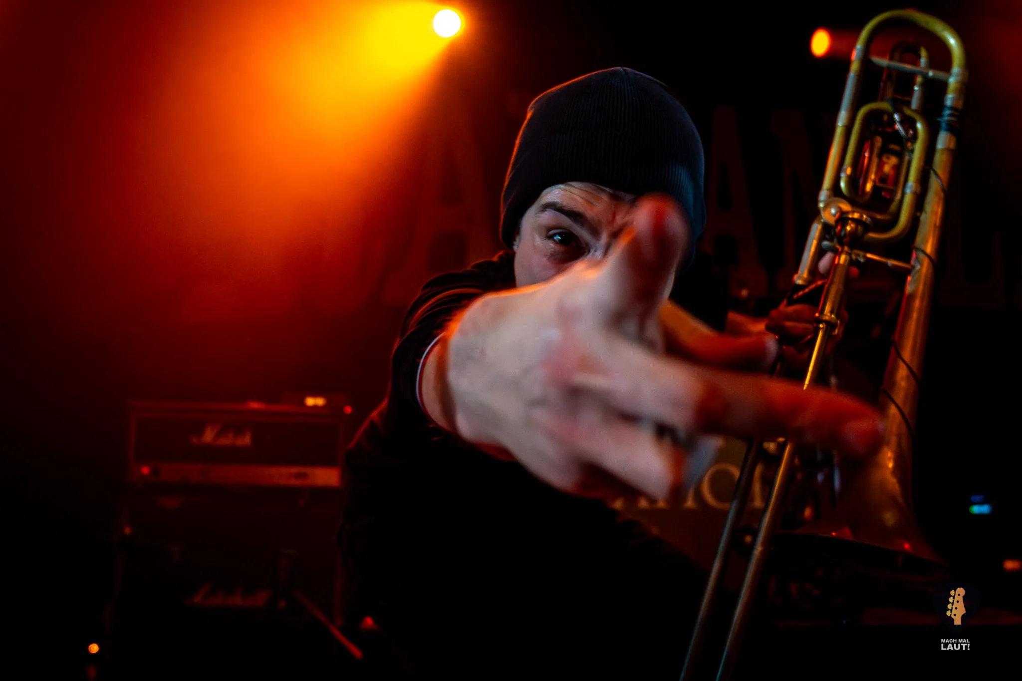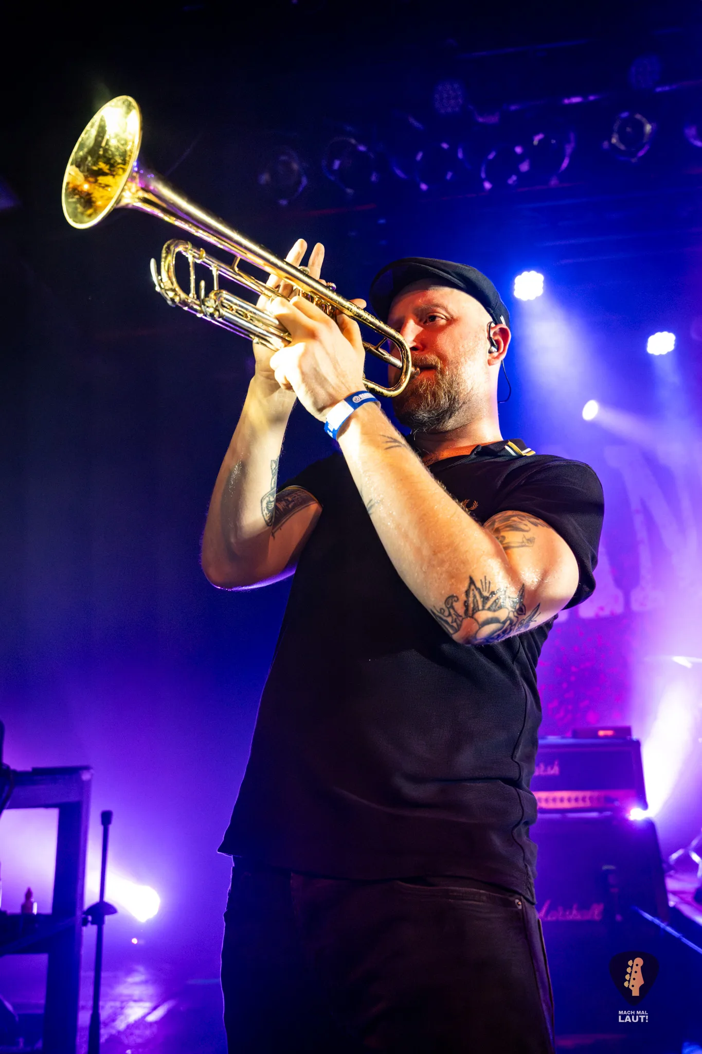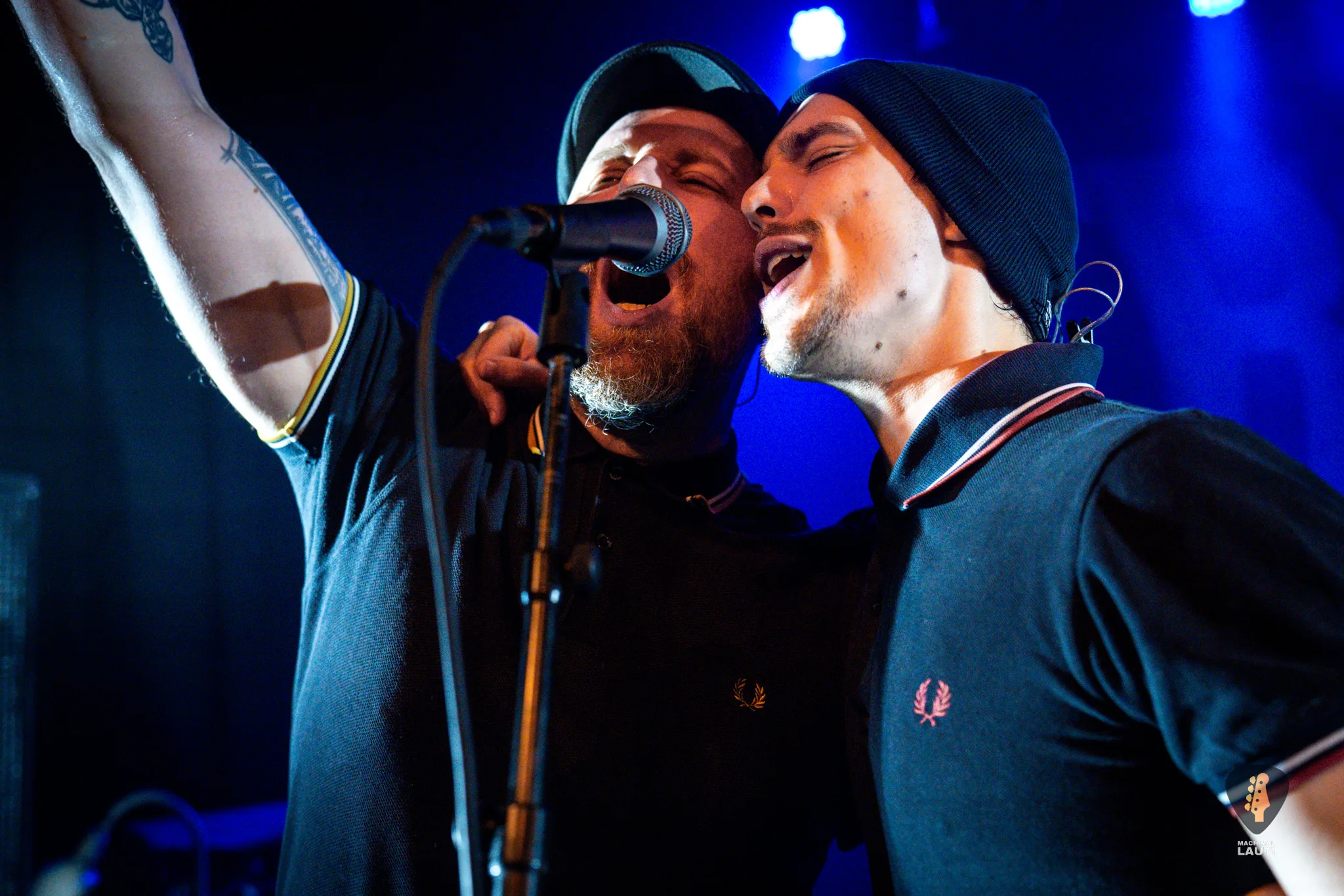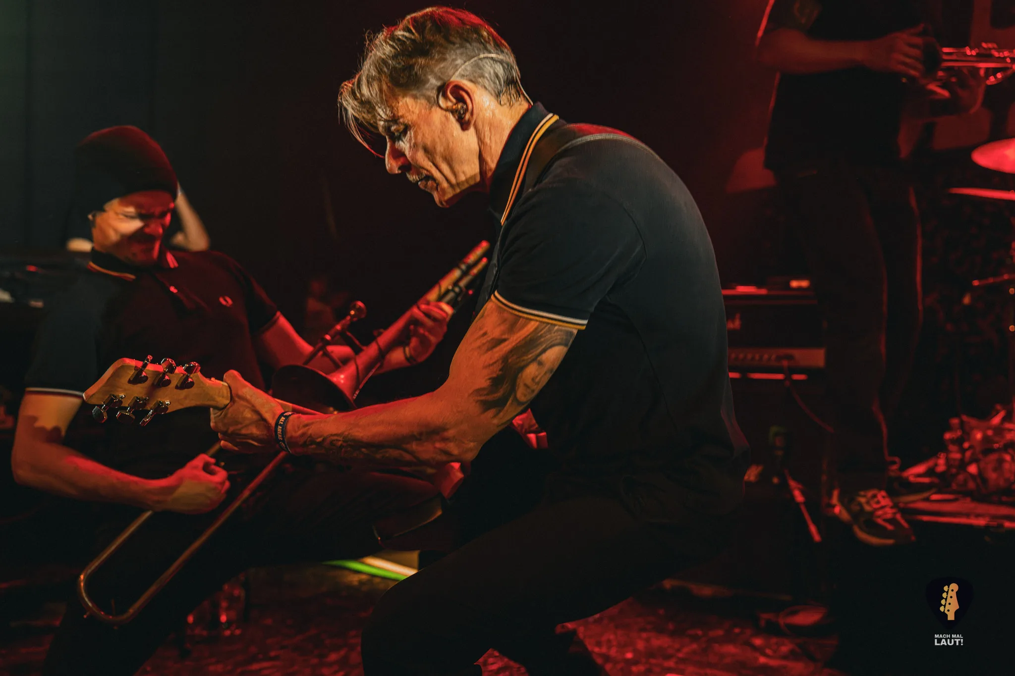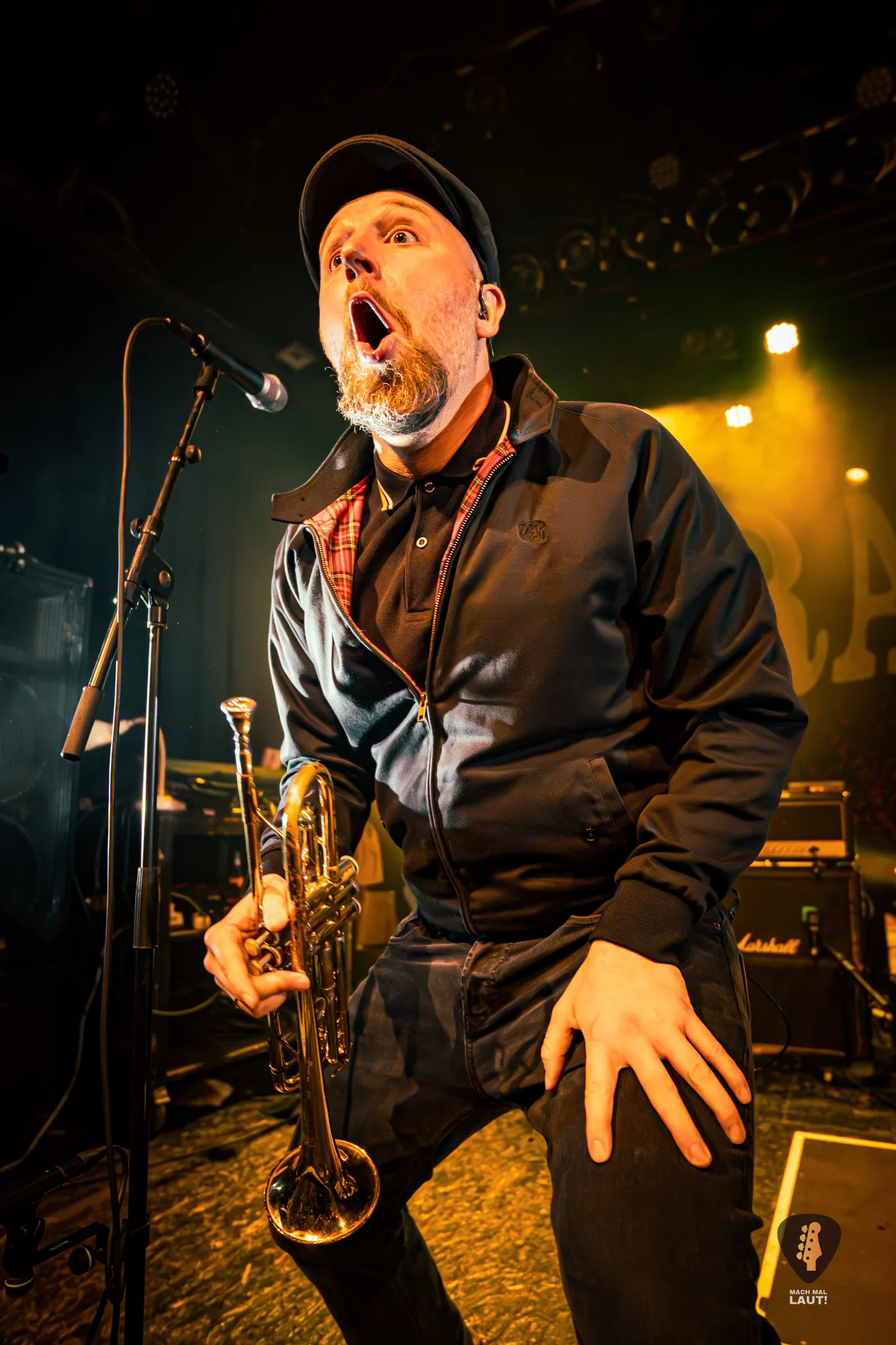 Dann war es so weit – Das Rudel betrat die Bühne und machte von der ersten Minute an klar, warum dieses Konzert zu den festen Terminen im Hamburger Konzertkalender gehört. Die 10. Ausgabe fühlte sich nicht wie ein normales Konzert an, sondern wie ein großes Familientreffen von Band und Publikum. Die Band um Sänger Torben tauschte auf der Bühne immer wieder die Positionen und interagierte mit dem Publikum. Besonders die Trompeten- und Posaunenfraktion aus Lea, Ulf und David tanzte und sprang wild auf der Bühne umher und ließ sich auch nicht davon abhalten einen Ausflug ins Publikum zu machen. Bassist Pedi, der für ein paar Songs die Gitarre vom Haupt-Bassisten Kalle übernahm sprang sogar für einen Stage-Dive von der Bühne aufs Publikum. Schlagzeuger Marlon gab am Schlagzeug alles und war am Ende wie alle Bandmitglieder sichtlich durchgeschwitzt. Müde wurden sie während des Sets dennoch nicht und gaben weiter Vollgas.