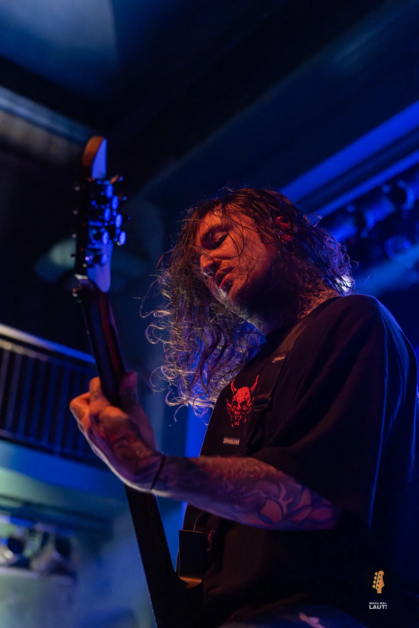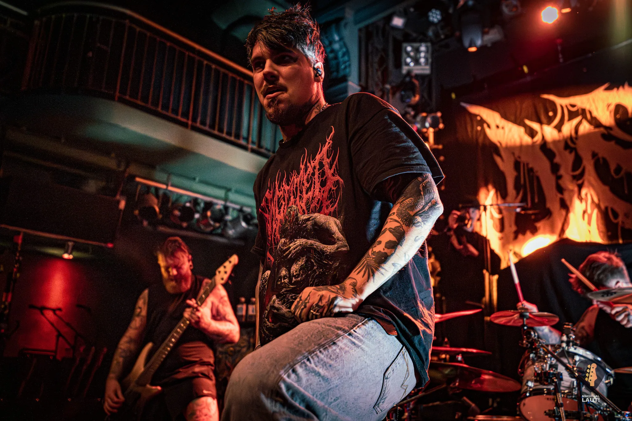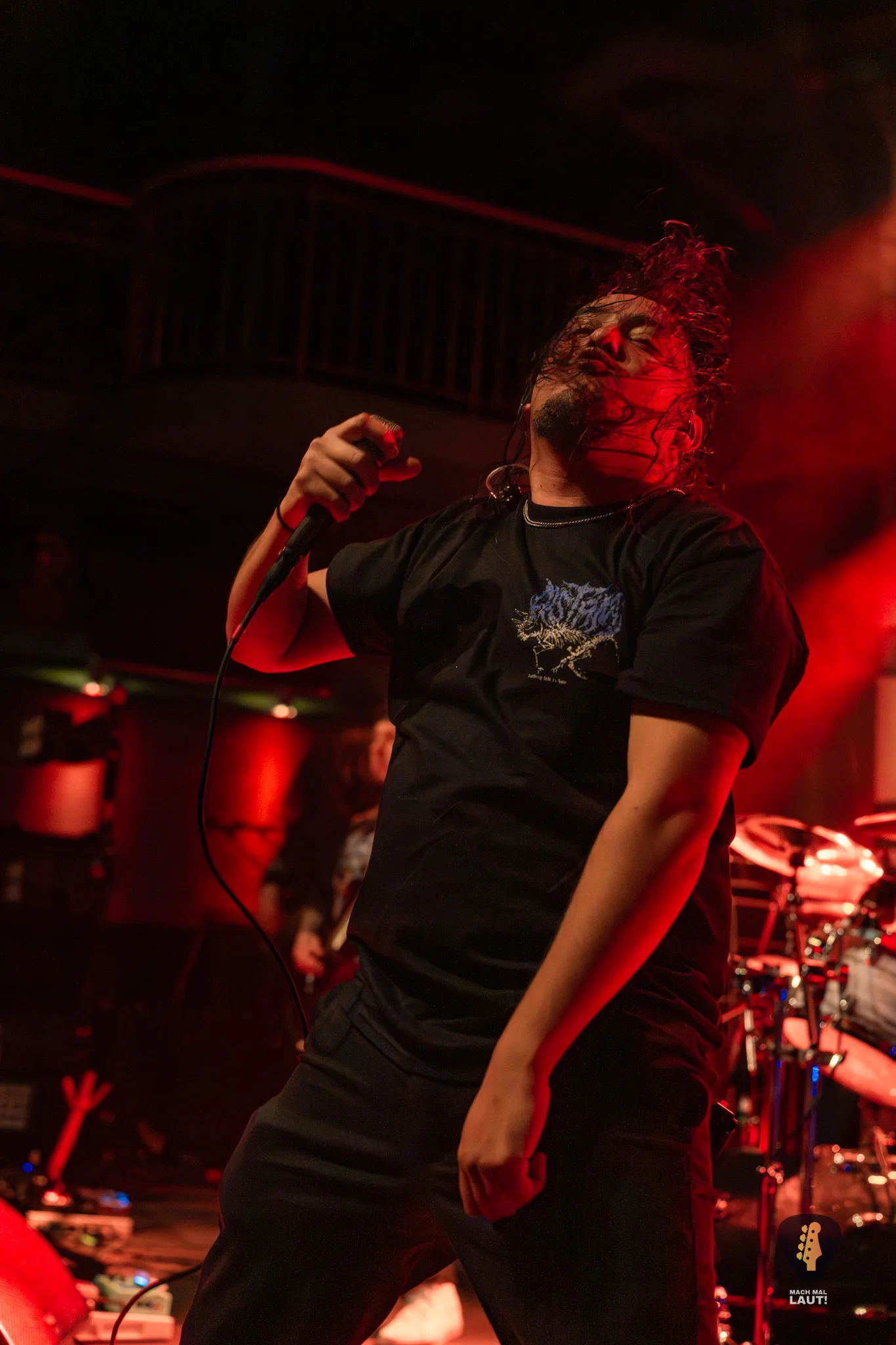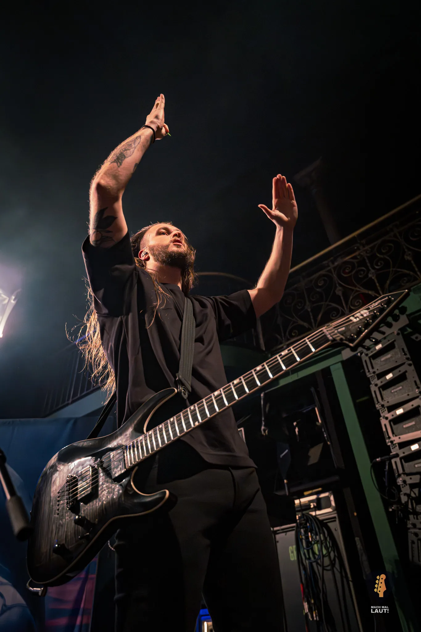 Als Sylosis schließlich die Bühne betraten, war die Stimmung im Gruenspan auf ihrem Höhepunkt. Die Briten präsentierten eine Setlist, die sowohl Klassiker als auch neuere Songs enthielt und die enorme Bandbreite ihres Schaffens demonstrierte. Die Mischung aus aggressiven Neuheiten und etablierten Live-Favoriten zeigte einmal mehr, warum Sylosis zu den spannendsten Acts im modernen Metal zählen. Jeder Track knüpfte nahtlos an den vorangegangenen an und sorgte für intensive 90 Minuten voller Präzision, Melodie und purer Adrenalin-Explosion. Sie spielten sogar einen noch unveröffentlichten Song vom neuen Album mit All Glory, No Valor . Sänger Josh Middleton bat das Publikum darum die Performance nicht mit dem Smartphone zu filmen oder zumindest nicht online zu stellen. Tatsächlich sah man nur vereinzelte Besucher filmen. Es war ein cooler Moment.