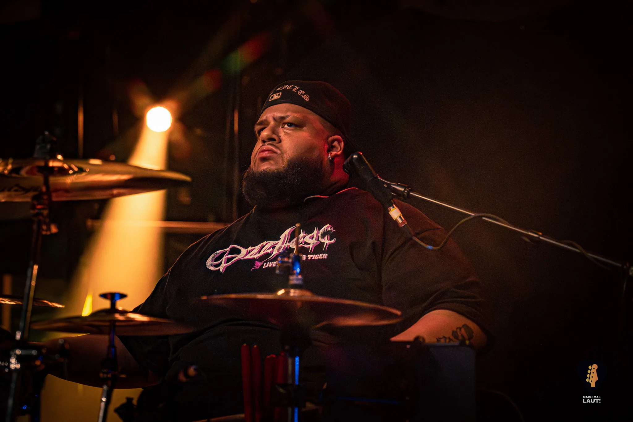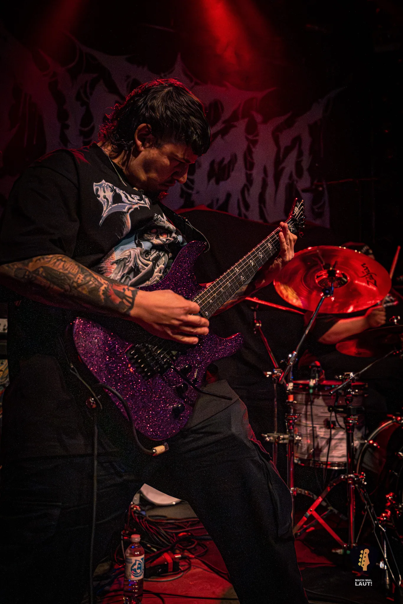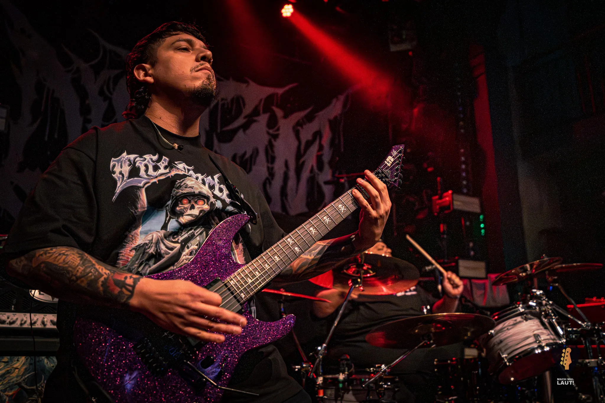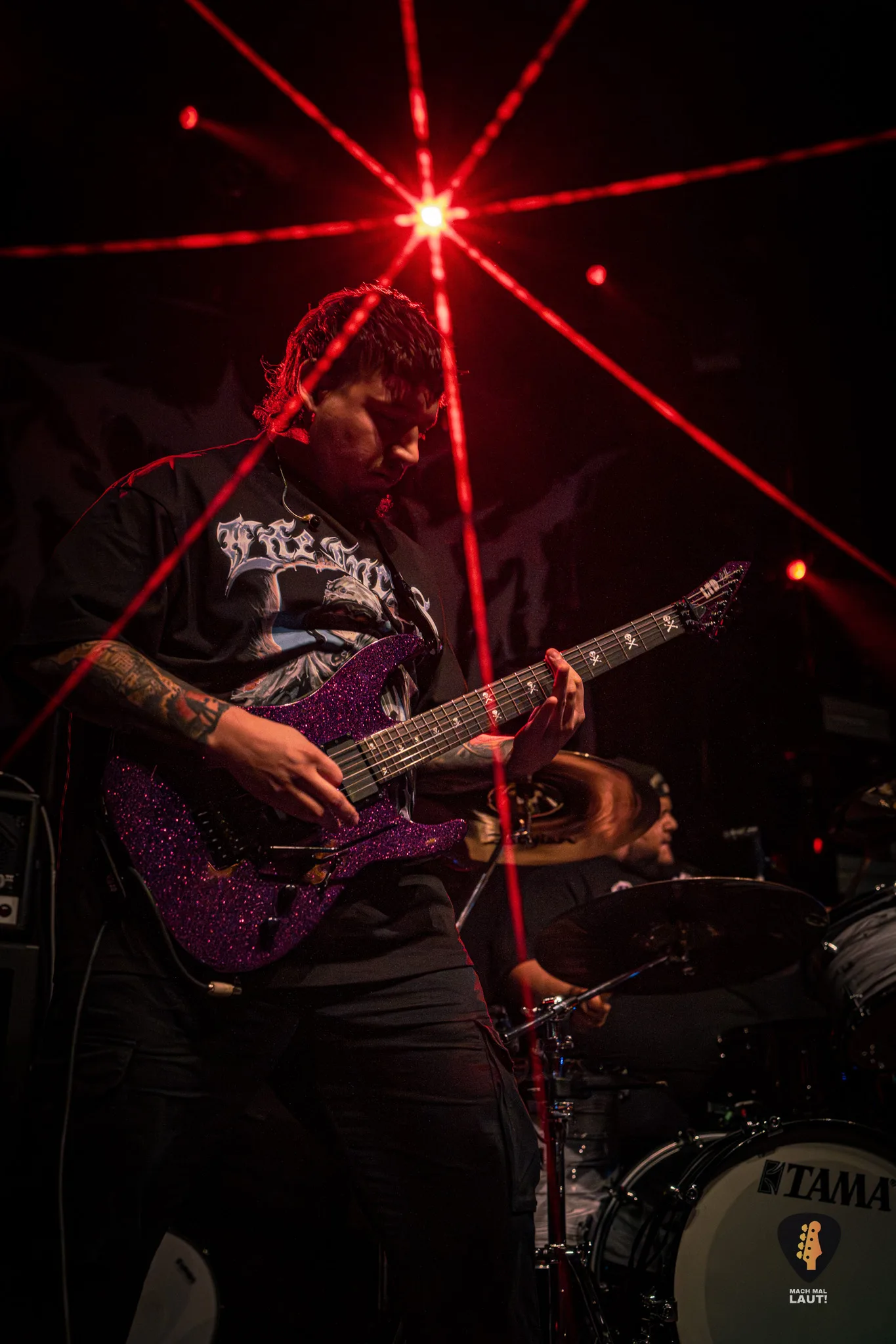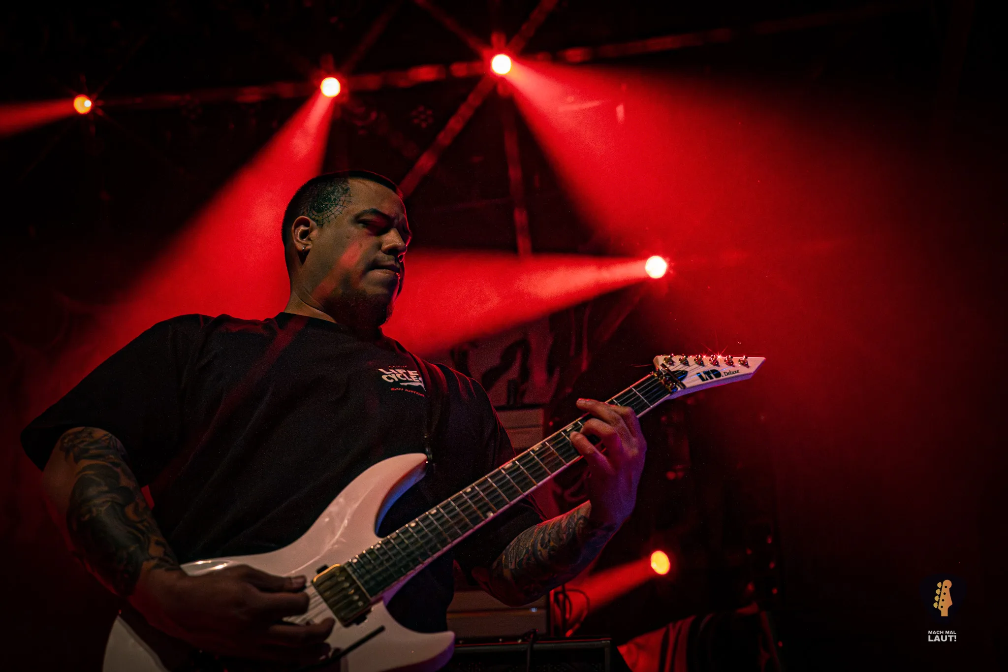 Als Sylosis schließlich die Bühne betraten, war die Stimmung im Gruenspan auf ihrem Höhepunkt. Die Briten präsentierten eine Setlist, die sowohl Klassiker als auch neuere Songs enthielt und die enorme Bandbreite ihres Schaffens demonstrierte. Die Mischung aus aggressiven Neuheiten und etablierten Live-Favoriten zeigte einmal mehr, warum Sylosis zu den spannendsten Acts im modernen Metal zählen. Jeder Track knüpfte nahtlos an den vorangegangenen an und sorgte für intensive 90 Minuten voller Präzision, Melodie und purer Adrenalin-Explosion. Sie spielten sogar einen noch unveröffentlichten Song vom neuen Album mit All Glory, No Valor . Sänger Josh Middleton bat das Publikum darum die Performance nicht mit dem Smartphone zu filmen oder zumindest nicht online zu stellen. Tatsächlich sah man nur vereinzelte Besucher filmen. Es war ein cooler Moment.